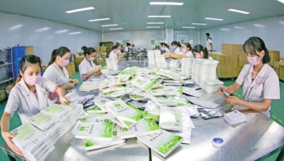 日前,孝昌县花园镇澴西工业园的湖北龙威制药有限公司敷贴包装车间一派繁忙。为应对疫情影响,该公司积极迎合市场,将主打的小儿贴剂类产品向中老年贴剂转产,并加大电商平台的推广力度。今年3月复工以来,已实现产值2000万元,较去年同期增长30%。(记者徐文 特约记者高玉峰 通讯员许云东 摄)