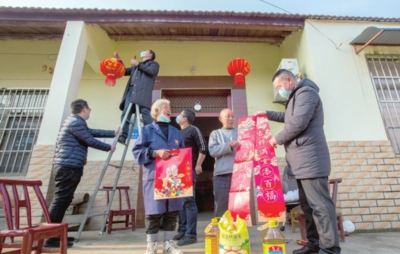2月5日,孝南区住建局工作人员携带着灯笼、春联和慰问物资来到陡岗镇池庙村危房改造贫困户池泊清、程清香老两口家回访。