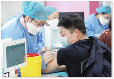 3月2日,安陆市王义贞镇教师正在该市妇幼保健院接种新冠疫苗。自去年12月以来,该市已完成对医疗卫生、公安武警、商务外贸、物流运输、社工干部等部门人员的疫苗接种工作,累计接种11358人。3月6日,已完成全市教师的接种工作。(通讯员王代金 摄)