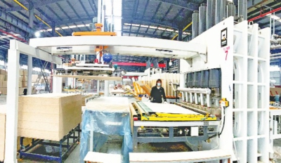 2月18日,汉川市经济开发区拜尔地板公司生产线包装强化复合地板待装出厂。该公司投资3.2亿元,规划建设4栋厂房,新增扩能设备。投产后可年产强化复合地板,热地板和家居板材800万平方米,实现年销售收入8亿元,税收5000万元。(全媒体记者匡文杰 摄)