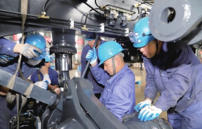 5月19日,航天重工生产工人正加紧装配智能矿用宽体自卸车小批量订单剩余车辆。据了解,该车辆直接在自主设计的总装柔性生产线上总装,车辆装配和生产线优化完善同步实施,在极短的时间内完成了首批8台车辆的下线和生产线优化改进,为抢占市场先机赢得先机。通讯员应福根 摄