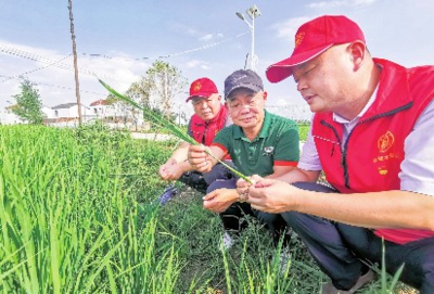 | 应城市农技推广中心帮扶专班在糯稻基地查看糯稻生长情况 |