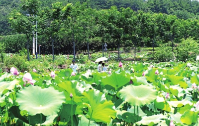 荷花开游客来