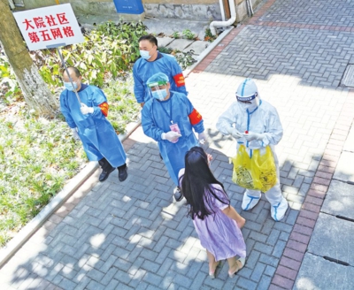 9月6日,下沉孝南区广场街道大院社区的党员干部,引导居民有序在楼下就近参加新一轮核酸检测。
