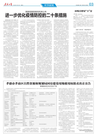 上接01版 围绕“五个一”工程,市农科院实施农业科技配套工程,“一企一策”制定了“卡脖子”技术攻关路线和发展目标任务。一系列的新技术、新品种、新模式在农业生产中开花结果。 今年元至9月,我市农产品加工业产值1182.27亿元,同比增长13.8%,元至8月份出口3.2亿元,同比增长181.6%,高出全省平均水平。壮大产业集群,建成省级产业联合体14个,汉川小龙虾、应城糯稻产业集群纳入国家产业集群支持项目,培育市级及以上农业产业化龙头企业378家。 实施“三项行动”缔造幸福乡村 “河道改造后再现昔日清水,荒地上也建起了美丽的公园。”谈及生活环境的变化,云梦县沙河乡李家店社区居民喻淑平开心地说。 全长约3.5千米的老县河蜿蜒环绕着沙河镇区。但常年水体黑臭,两岸垃圾乱堆。该镇以功能镇区建设为契机,从“激活一河水”入手,以“梦里水乡、灵秀沙河”为主题,打造“农旅小镇”品牌。 2020年底,我市创新提出实施乡村振兴“功能镇区、和美乡村、实力产业”三项行动,作为巩固拓展脱贫攻坚成果同乡村振兴有效衔接的总牵引,示范引领、试点先行,探索全面推进乡村振兴的“孝感实践”。截至目前,全市创建23个“功能镇区”、688个“和美乡村”。 小城镇,一头连着城市、一头连着乡村,是城市与乡村的连接体和中转站。我市把完善集镇功能作为推进乡村振兴的“先手棋”,以“擦亮小城镇”行动为抓手,补齐规划、特色、功能三方面短板。 立足区域特色,融入“孝”的基调、“绿”的理念以及红色文化、乡土文化,分类打造一批产业强镇、商贸重镇、文旅小镇、红色小镇,特色小镇正焕发出勃勃生机。 孝昌县王店镇新岗村,人手一张10分钟服务承诺卡。卡上记录的是日常服务、突发情况、重大变故、群体性事件和违法违纪等5项承诺,同时将村民各种揪心事、烦心事纳入承诺范围。“10分钟服务承诺”带来了乡村治理的大变化,新岗村成为“乡风文明、村容整洁、管理民主、村民富裕”的宜居乡村。 建设“和美乡村”,提升乡村善治水平。我市践行“共同缔造”理念,在建设和美乡村过程中,积极发动群众参与,做到决策共谋、发展共建、建设共管、效果共评、成果共享,推动乡村善治善美,实现乡村和谐净美。让和美乡村留得住青山绿水、守得住记忆乡愁。 我市今年完成177个和美乡村示范创建村村庄规划,谋划实施和美乡村项目1325个,已开工1069个,已完工703个;推动54个村开展“美好环境与幸福生活共同缔造”试点工作。 乡村振兴,时不我待。站在新的历史起点,孝感奔涌如昨,日新月异、一路向好。