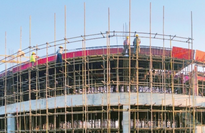 8月31日,云梦县经济开发区祥云湾文旅项目建设工地一派繁忙,一座直径60米的特色建筑“土楼”拔地而起。据介绍,此土楼预计在10月上中旬可完成主体工程建设,经过装修后即可与游人见面。这是孝感地区首座大型“土楼”,将成为祥云湾文旅项目的重要组成部分。目前,祥云湾已经建成聚贤堂、鼓楼、楼外楼、藏式白塔、八脚石坊祥云坊等多个特色建筑。■特约记者 陈保忠 摄