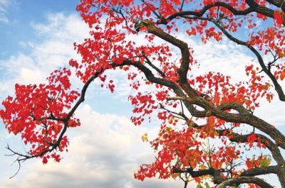 每年10月底至11月中旬,霜降过后,乌桕树逐渐从青红相间到满树红遍。徜徉在乌桕树林间,似完成了四季轮回中的一次壮美旅程。