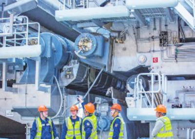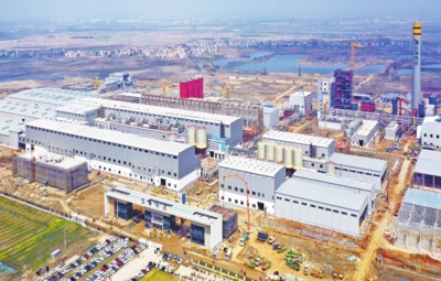 日前,五洲特纸449万吨浆纸一体化项目PM15湿式造纸联合厂房里,技术人员正在调试生产线管道等设施(左图)。厂房外,工人在加快推进配套设施的建设(右图)。该项目拟建设21条浆纸生产线,总投资173亿元,首条生产线将于4月投入试运行。