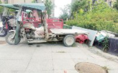 在同升社区金港奥城小区,多处杂物被堆放在小区道路旁边,部分小区路面存在未及时清理的垃圾(图①)。