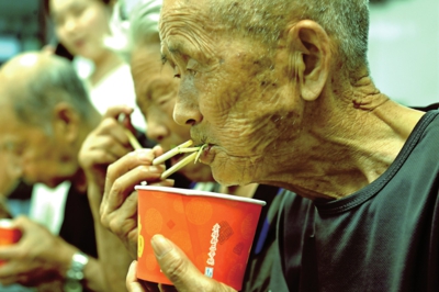 此时,拄着拐杖来到幸福食堂的刘新涛说:“以前吃了上顿愁下顿,现在幸福食堂天天能吃到幸福的味道!”