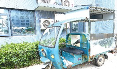 在乾坤新城2期小区,有电动三轮车正在飞线充电,存在安全隐患。走进一楼道内,一座消火栓柜玻璃破裂,下部灭火器位置玻璃缺失。