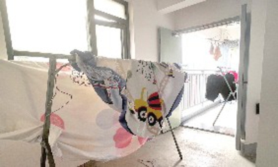 乾坤新城小区楼道有晾晒衣物