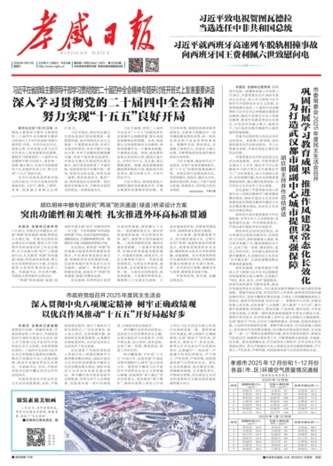 本报讯 全媒体记者李琦 按照党中央统一部署和省委工作安排,1月20日,市委常委会召开2025年度民主生活会,深入学习贯彻习近平新时代中国特色社会主义思想,全面贯彻落实党的二十届四中全会精神和习近平总书记考察湖北重要讲话精神,锲而不舍落实中央八项规定精神,推进作风建设常态化长效化,以优良作风凝心聚力、真抓实干,为打造武汉都市圈副中心城市提供坚强保障。 市委书记胡玖明主持会议并作总结讲话。省委第九督导组,省纪委监委有关同志到会指导。市人大常委会党组、市政协党组主要负责同志列席。 市委常委会对开好这次民主生活会高度重视。会前,市委常委同志通过个人自学、理论学习中心组集体学习研讨等方式开展理论学习,广泛征求意见,深入开展谈心谈话,全面查摆问题,结合反面典型案例深刻剖析,精心撰写检查材料,为开好民主生活会作了充分准备。 会议通报了市委常委会深入贯彻中央八项规定精神学习教育整改整治情况、2024年度民主生活会和省委巡视反馈意见整改专题民主生活会整改落实情况、本次民主生活会征求意见情况。 胡玖明代表市委常委班子作对照检查,并带头作个人对照检查,其他常委同志逐一作对照检查发言,严肃认真开展批评和自我批评。 胡玖明在总结讲话时指出,各位常委同志坚持问题导向,自我批评刀刃向内,剖析根源深入透彻,相互批评直截了当,整改措施切实可行,达到了统一思想、增进团结、促进工作的目的。会后要认真抓好查摆问题整改,扎实做好民主生活会“后半篇文章”,以高质量整改推动孝感高质量发展。 胡玖明强调,市委常委班子要深入学习贯彻习近平总书记重要讲话和重要指示批示精神,自觉践行“笃信、务实、担当、自律”重要要求,持续巩固拓展学习教育成果,推进作风建设常态化长效化,为打造武汉都市圈副中心城市提供坚强保障。要铸牢政治忠诚,在笃信笃行上作表率,始终将党的政治建设摆在首位,坚持不懈抓好理论武装,以理论上的清醒确保政治上的坚定,做到学思用贯通、知信行统一。要聚焦中心任务,在推动发展上求实效,对标省委“七大战略”,深入推进“十大行动”,着力提升发展能级、科创能力、枢纽功能、产业质效、城市品质,守牢安全稳定底线,以孝感一域的高质量发展服务全省支点建设大局。要恪守务实担当,在攻坚克难上显作为,树立和践行正确政绩观,弘扬“敢快干”作风,以钉钉子精神抓落实、求突破,创造经得起实践、人民和历史检验的实绩。要树牢群众观念,在为民造福上践初心,走好新时代党的群众路线,切实解决好就业就学就医、社会保障、“一老一小”等群众急难愁盼问题,抓好市场保供稳价、极端天气防范应对、困难群众帮扶等工作,不断增强群众获得感、幸福感、安全感。要永葆清廉本色,在自我革命上树标杆,扛牢全面从严治党政治责任,带头严格落实中央八项规定及其实施细则精神,严于律己、严负其责、严管所辖,巩固发展风清气正的良好政治生态。