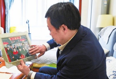 马发轩长子马战手捧全家福,向记者追忆父亲生前的点滴往事。全媒体记者周洋 摄