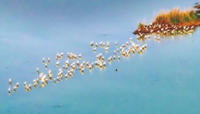 近日,候鸟在汉川市汈汊湖国家湿地公园戏水。作为全国最大内陆封闭式淡水湖,该湿地公园生态持续向好,现有鸟类142种。近年来,当地累计完成退垸还湖7万余亩,湿地生态功能大幅提升。良好的栖息繁育条件,让越来越多候鸟在此安心栖息。特约记者刘家 摄